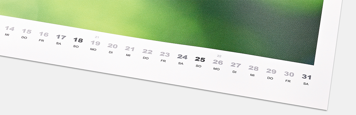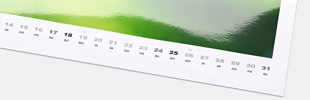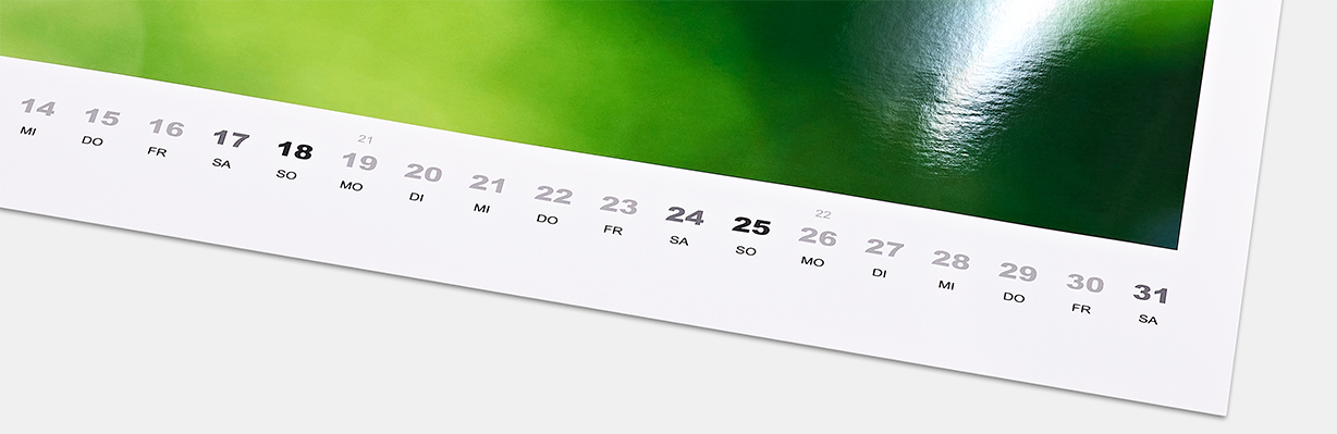 Die Verwendung von hochwertigem Markenfotopapier sorgt dafür, dass Ihr Kalender zu einem echten Qualitäts-Erlebnis wird. Darauf geben wir unsere 100% Zufriedenheitsgarantie.